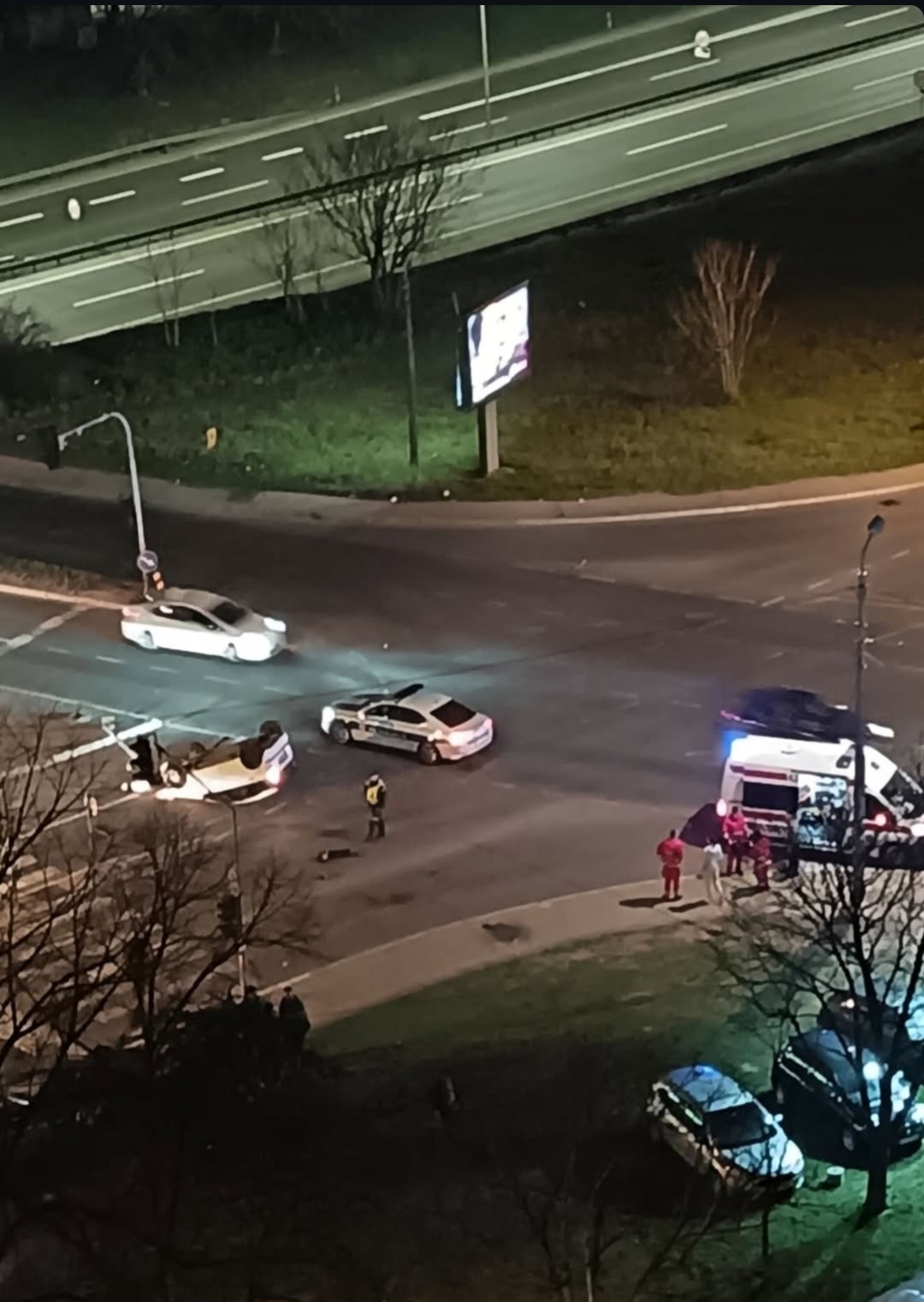 Noćas je kod Plavog mosta na Voždovcu došlo do ozbiljne saobraćajne nezgode u kojoj je jedno vozilo završilo prevrnuto na krovu.