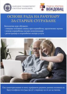 Kao rezultat saradnje Gradske opštine Voždovac i Ustanove kulture i obrazovanja „Narodni univerzitet Svetozar Marković“, biće organizovana još jedna besplatna obuka za rad na računarima, ovaj put za naše starije sugrađane.