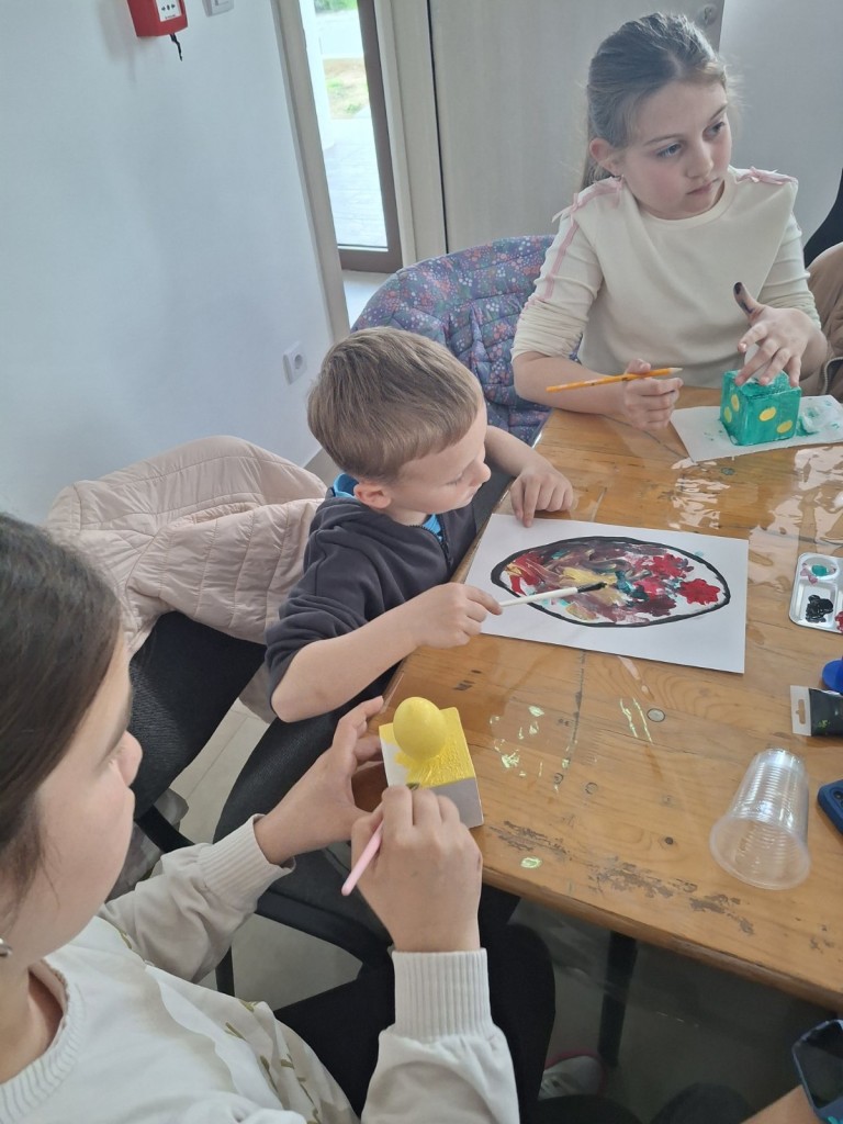 Deca uzrasta od 5 do 20 godina učila su tehniku slikanja na drvenoj podlozi, da bi na kraju sami kreirali izložbenu postavku radova nastalih na radionici.