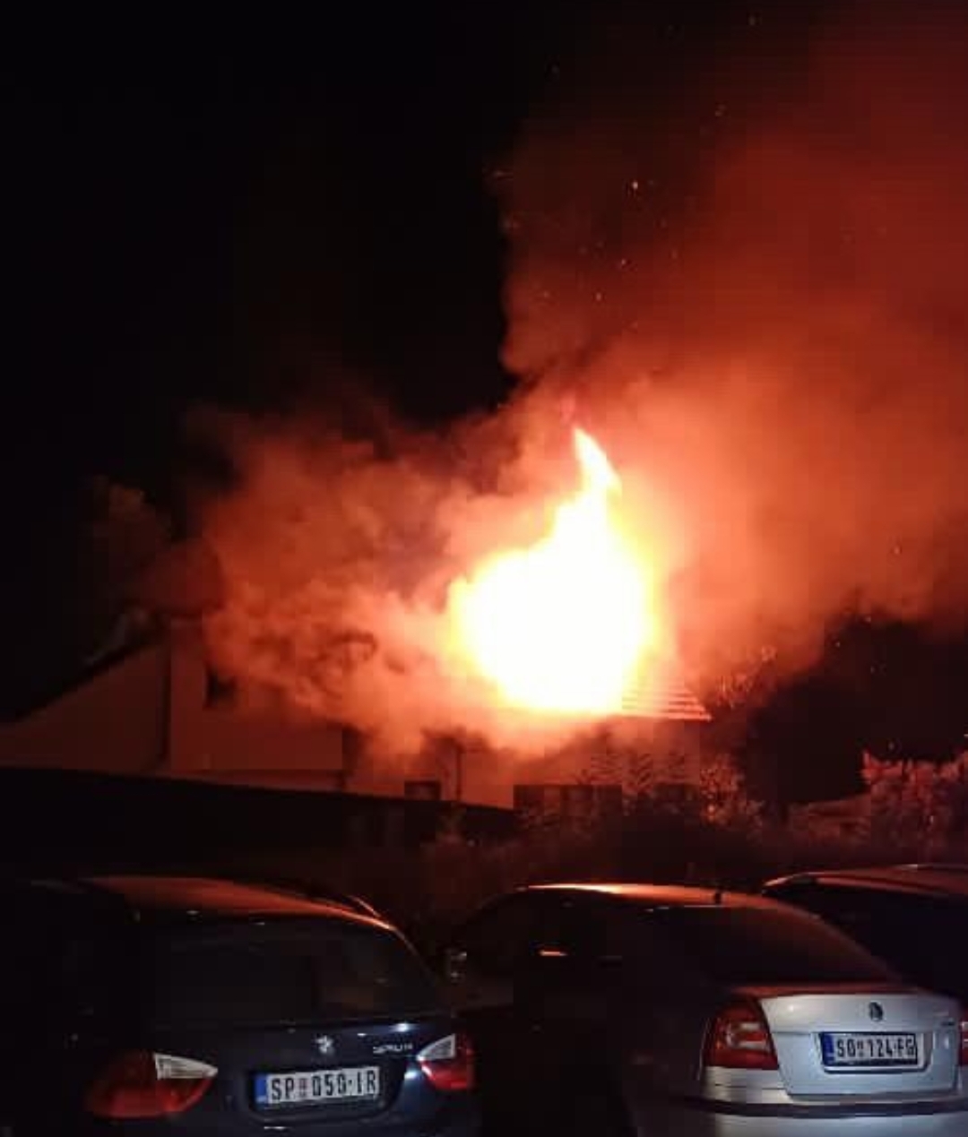 Kako se vidi na snimcima sa lica mesta, vatra je zahvatila čitav objekat i preti da se proširi na okolinu.